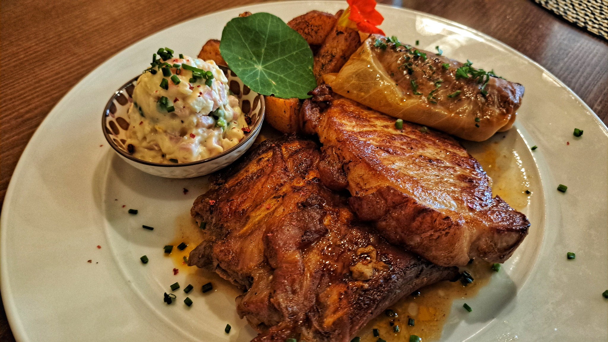 Einen ofenfrischen und Schweinsschopf mit hausgemachten Püree gab es am zweiten Tag